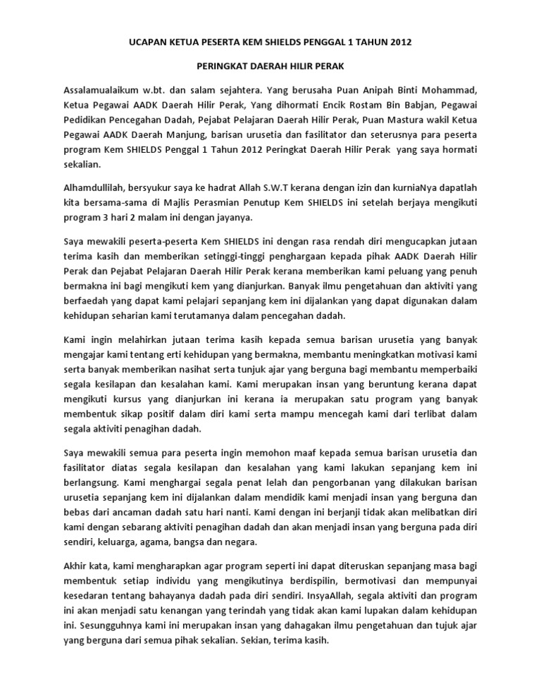 . Pelbagai kerenah dan tingkah laku alam remaja telah kita lakarkan. Teks ucapan majlis penutup kem motivasi any formats. Pasukan pancaragam STAR seramai 62 orang pada penghujung.